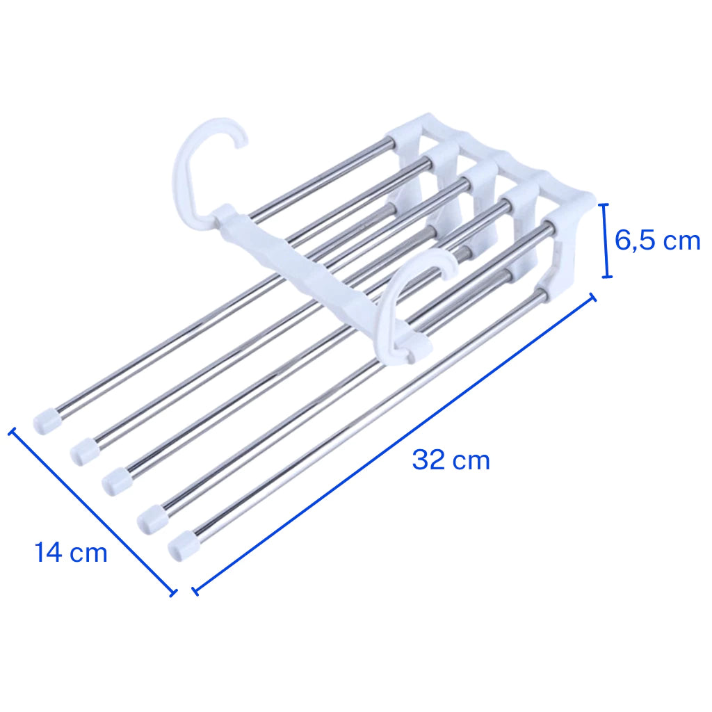 🚀 5-in-1 Multifunctionality: Hang up to 5 pairs of trousers on a single hanger, saving space and keeping everything neatly arranged. Perfect for small wardrobes or for anyone who loves a tidy space.